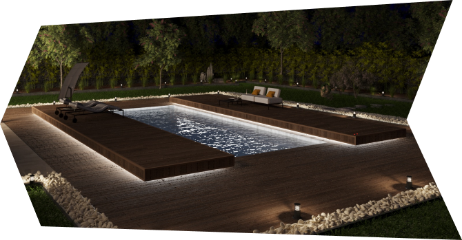 Автоматична тераса виготовляється індивідуально під розмір басейну.