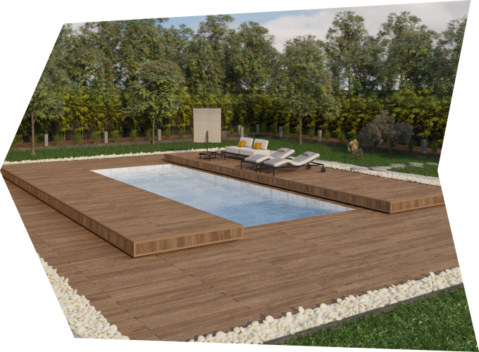 Перешкоджає попаданню опадів у басейн завдяки системі водовідведення, прихованій під терасною дошкою.