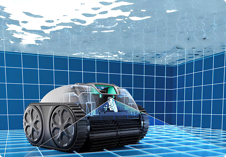 Завдяки інтелектуальній системі, навігації пилосос досягає оптимальної продуктивності очищення вашого басейну!