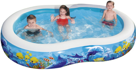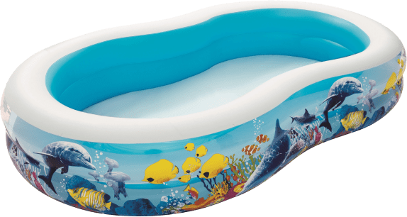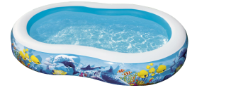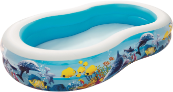 Дитячий надувний басейн Bestway - це ідеальне рішення для організації веселого відпочинку дітям старше трьох років. Яскравий дизайн на морську тематику розвиває уяву малюків. Реалістичний принт виконаний у вигляді доброзичливих дельфінів і мешканців коралового рифу. Басейн має габарити 262х157х46 см.