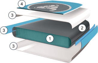 Повітряна камера укладена між двома шарами ПВХ, стійкого до УФ, температурних перепадів та хімії для басейну, за технологією Double Skin.