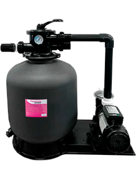Фільтр обладнаний шестиходовим клапаном із верхнім типом підключення. Клапан оснащений манометром для контролю тиску та оглядовим вікном для моніторингу каламутності води. Ємність із високоміцного поліетилену стійка до корозії, вологи, ультрафіолету та хімії для басейну.