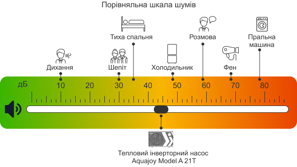 | Рівень шуму на відстані 10 м, дБА | <29 | <31 | <32 | <33 | <34 | <35 | <36 | <37 | <38 |