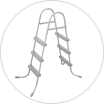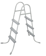 Драбина Bestway 58335 має металевий каркас з алюмінієвого сплаву з антикорозійним напиленням. Її вантажопідйомність становить 305 кг.