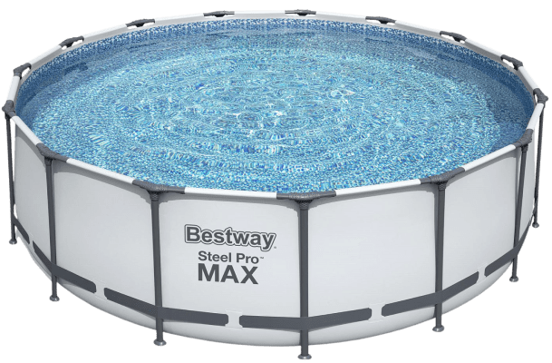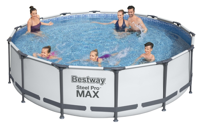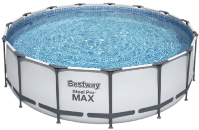 Круглий наземний каркасний басейн Bestway серії Steel Pro MAX забезпечує комфортне плавання для компанії, яка складається з кількох людей. Чаша басейну має об'єм 13 030 л, діаметр 427 см і висоту 107 см.