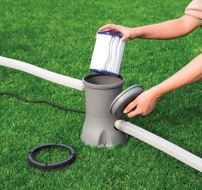У комплекті з фільтрувальною установкою поставляється картридж Bestway 58094. Картриджі очищують воду від пилу, бруду та сміття завдяки великій площі фільтруючої поверхні з гофрованого текстильного матеріалу. Щоб забезпечити максимальну ефективність очищення води, щодня промивайте фільтрувальний блок під проточною водою. Повна заміна картриджа потрібна не частіше одного разу на два тижні.