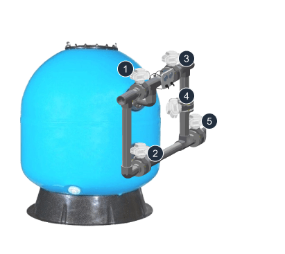 Зворотне промивання фільтра:крани 2 та 3 відкриті