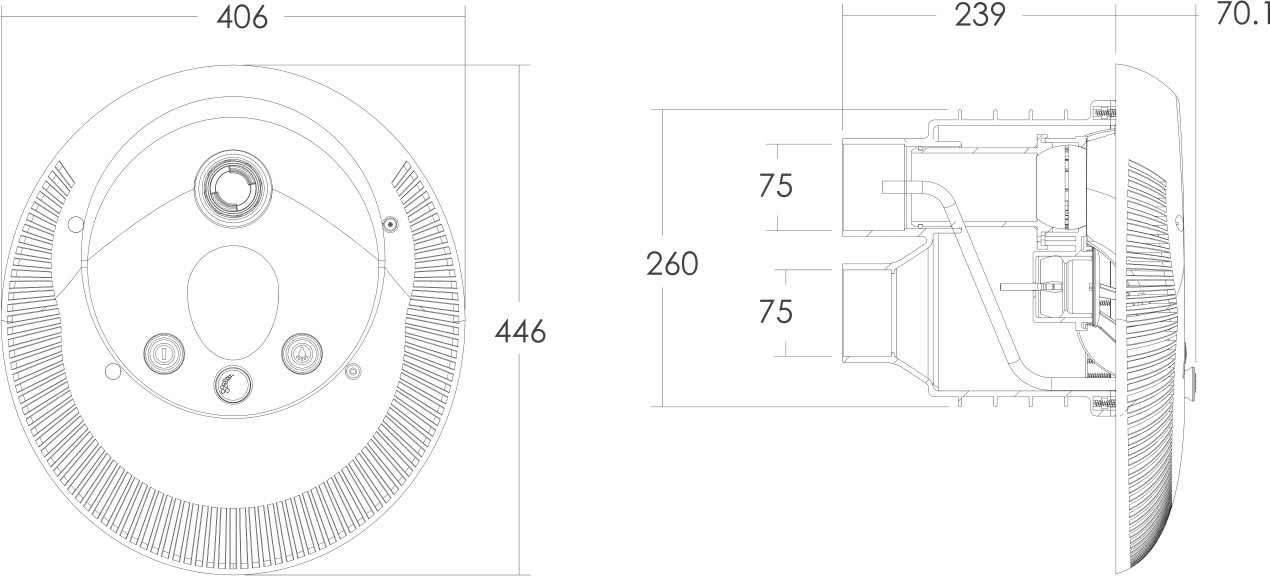 Передня частина та закладна LED-ЕМ0055 до протитечії Emaux. Обладнана кольоровою LED підсвіткою.