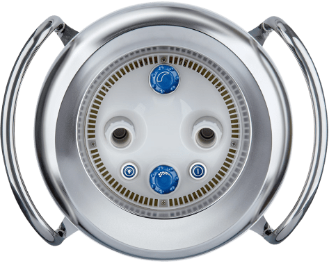 За допомогою насоса вбудована протитечія всмоктує воду з басейну через кільцевий канал в кришці світлодіода та всмоктувальну панель, а потім повертає її в басейн разом із бульбашками повітря під сильним напором через 2 форсунки. Ви можете обрати напрямок потоку, обертаючи форсунки на 60° в будь-якому напрямку. Регулюйте швидкість потоку, концентрацію бульбашок повітря та світлодіодне підсвічування, не виходячи з басейну, за допомогою пульта дистанційного керування або сенсорних кнопок на лицьовій панелі протитечії: