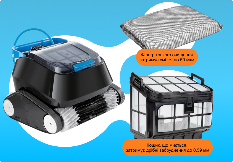 2Місткий кошик на 7 лта змінний фільтр затримують забруднення до 50 мкм