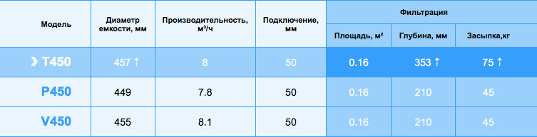 Фильтр Emaux T450 предназначен для работы при большем давлении и температуре жидкости, чем большинство аналогов рынка оборудования для бассейнов в этом классе. Выдерживает рабочее давление в 4 Бар. Фильтрующая площадь модели составляет 0.16 м². Для засыпки рекомендуется использовать стеклянную (или кварц) засыпку массой до 75 кг. Фракция наполнителя 0-4-0.8 мм. Комплектуется 6-режимным клапаном нового образца с муфтами под трубу (клей) 1.5''/50 мм.