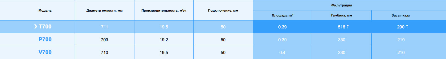 Фильтр Emaux T700 предназначен для работы при большем давлении и температуре жидкости, чем большинство аналогов рынка оборудования для бассейнов в этом классе. Выдерживает рабочее давление в 4 Бар. Фильтрующая площадь модели составляет 0.39 м². Для засыпки рекомендуется использовать стеклянную (или кварц) засыпку массой до 200 кг. Фракция наполнителя 0-4-0.8 мм. Комплектуется 6-режимным клапаном нового образца с муфтами под трубу (клей) 1.5''/50 мм.