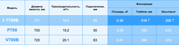 Фильтр Emaux T700B предназначен для работы при большем давлении и температуре жидкости, чем большинство аналогов рынка оборудования для бассейнов в этом классе. Выдерживает рабочее давление в 4 Бар. Фильтрующая площадь модели составляет 0.39 м². Для засыпки рекомендуется использовать стеклянную (или кварц) засыпку массой до 200 кг. Фракция наполнителя 0-4-0.8 мм. Комплектуется 6-режимным клапаном нового образца с муфтами под трубу (клей) 2''/63 мм.