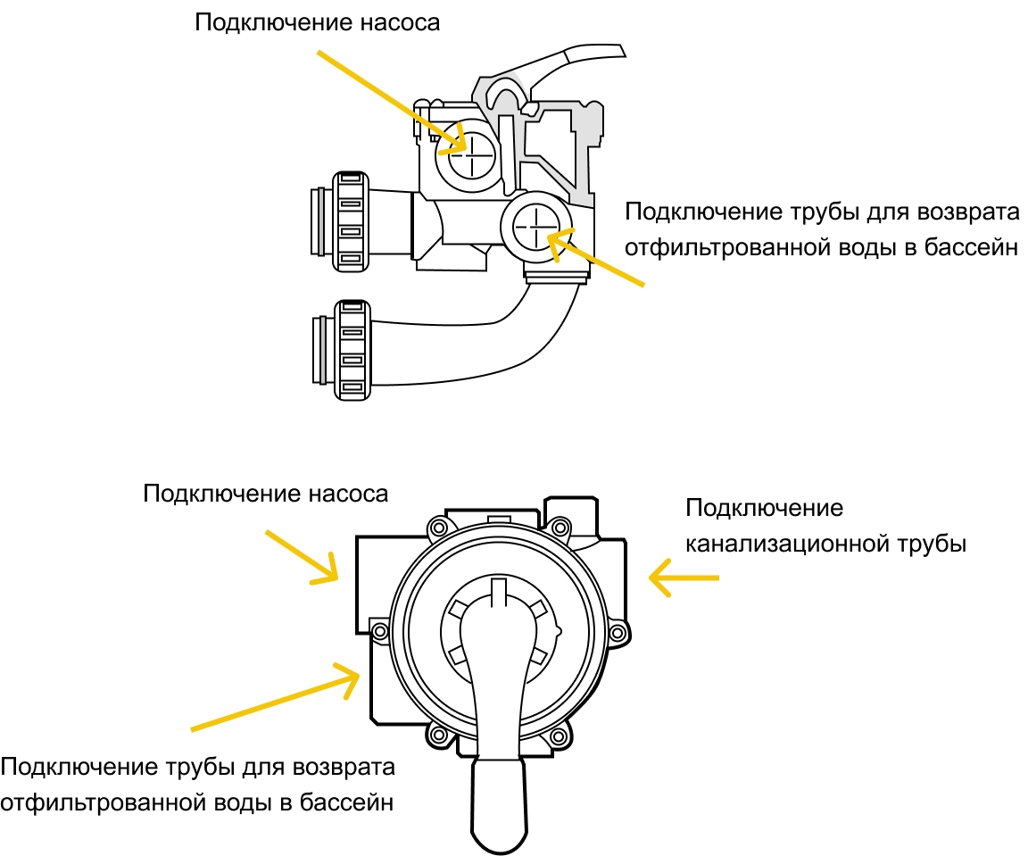 - 4 СЛИВ (WASTE) - прямой слив воды из бассейна в канализацию без фильтрации. Используется для понижения уровня воды в бассейне.