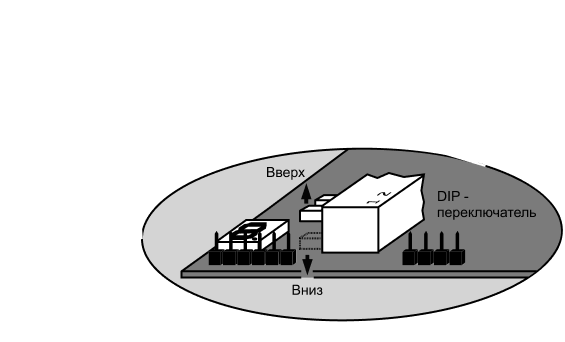 Распределительная коробка оборудована платой управления с блоком ручных электрических переключателей – DIP-переключателей. Каждый переключатель может быть установлен в двух положениях: вверх или вниз.