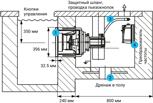 - В воде нет кабелей. Моторная часть монтируется в техкамеру вне бассейна.