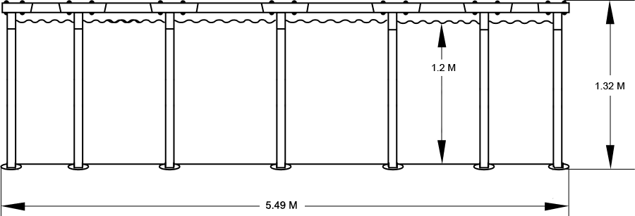 - Размеры: диаметр 549 см, высота 132 см