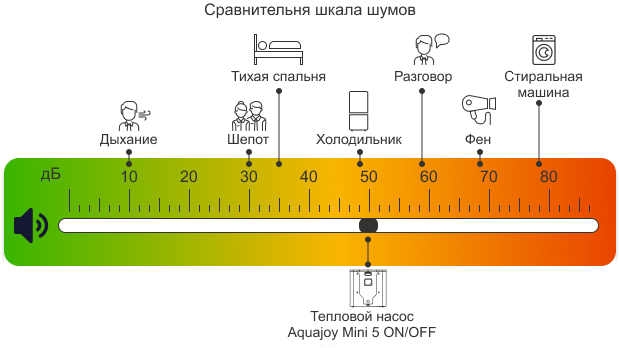Тепловые насосы Aquajoy Mini работают тихо даже при максимальной нагрузке. Такая работа обеспечивает плавную регулировку теплоотдачи и стабильное поддержание заданной температуры воды без резких колебаний.