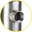 Зварний корпус із титану призначений для швидкого та ефективного нагрівання солоної хлорованої води при t° у первинному контурі до +150°C. Тепловтрати мінімальні завдяки великій площі поверхні внутрішніх гофрованих спіральних трубок. Така форма знижує водний опір, забезпечує захист від витоків та тривалий термін служби. Висока швидкість протоки 5.5 м/с забезпечує стійкість до накипу.
