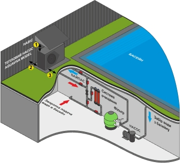 | Рекомендований об'єм басейну*, м³ | від 20 до 40 | від 30 до 55 | від 40 до 70 | від 45 до 90 | від 50 до 95 | від 60 до 110 | від 65 до 120 |