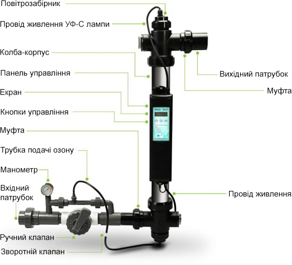 Озон окислює органічні речовини й знезаражує воду. Отримана суміш з води й озону піддається впливу ультрафіолету з дозою опромінення 30 мДж/см², забезпечуючи високу якість обробки й дезінфекції води.
